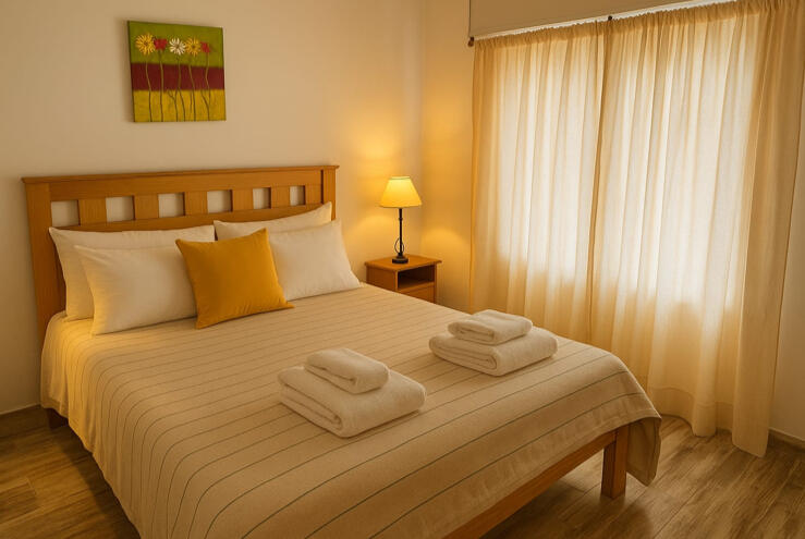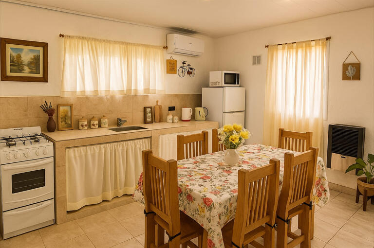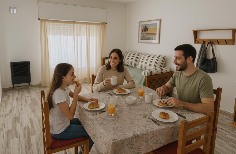 Alquiler por día en el centro de Laprida, a 4 cuadras de la Plaza Central, 6 cómodos departamentos, con Ropa Blanca, Wi-Fi, TV y Espacio Guarda Coches.